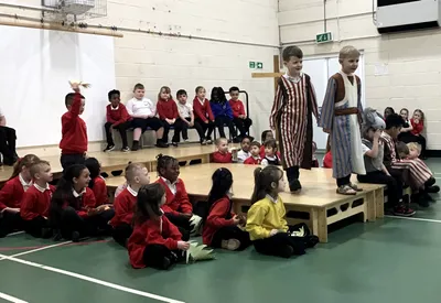 Year 3 and 4 shared with us the Jesus as 'servant king' washing the feet of his disciples and sharing with them the Last Supper before he was put to death.